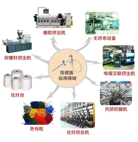 橡膠擠出機,塑料擠出機,塑膠押出機,電纜押出機,紡絲機,注塑機,熔體泵,無紡布設備等機械行業(yè),產(chǎn)品大量配套于無紡布,色母粒,化纖紡絲,橡膠,塑膠等諸多產(chǎn)品行業(yè)中,水處理,食品機械行業(yè)市場。為我公司環(huán)保型高溫熔體壓力傳感器,高溫熔體壓力變送器主導對象。