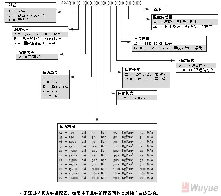 特征 ★ 通過“Z971”選項改進的線性產(chǎn)品 ★ HARTTM數(shù)字通訊系統(tǒng) ★ 4-20mA 環(huán)路供電輸出 ★ 0-500到0-30,000psi ★ 防爆,ATEX/本質(zhì)安全認(rèn)證 ★ 符合PED和CE要求 優(yōu)點 ★ 線性改進80% ★ 能通過手持式裝置配置 ★ 直接提供輸出給DCS或PLC ★ 由客戶定義壓力量程 ★ 已認(rèn)證無環(huán)境污染 ★ 符合新的EC要求 產(chǎn)品描述 SPX-L產(chǎn)品是一個智能的4-20mA 按鈕密封式壓力傳感器,能在惡劣的環(huán)境下使用。SPX2243是全焊接結(jié)構(gòu),具有一個小膜片和一個法蘭墊片,便于輕松安裝。SPX2243E適用于1級,1區(qū),A,B,C&D組的危險區(qū)。防爆模式采用一個導(dǎo)管裝置。SPX2243S還擁有ATEX/本質(zhì)安全‖1Gooa Eex ia ‖C, 0和1區(qū)的認(rèn)證。本質(zhì)安全和ATEX模式被提供一個導(dǎo)管裝置或一個密封6針邦迪克斯連接器。SPX-L同樣包括一個新的Dynisco 先進模塊,DynalarityTM,一個使由材料和加工變化引起的偏移線性化的高級運算法則模塊。 SPX-L2243按鈕密封式高溫熔體壓力傳感器(button type seally pakaged high temperature melt pressure sensor)